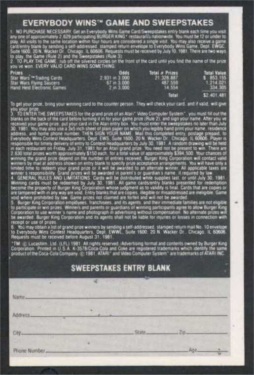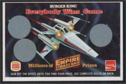Burger-King Empire Strikes Back "Everybody wins" cards from 1980