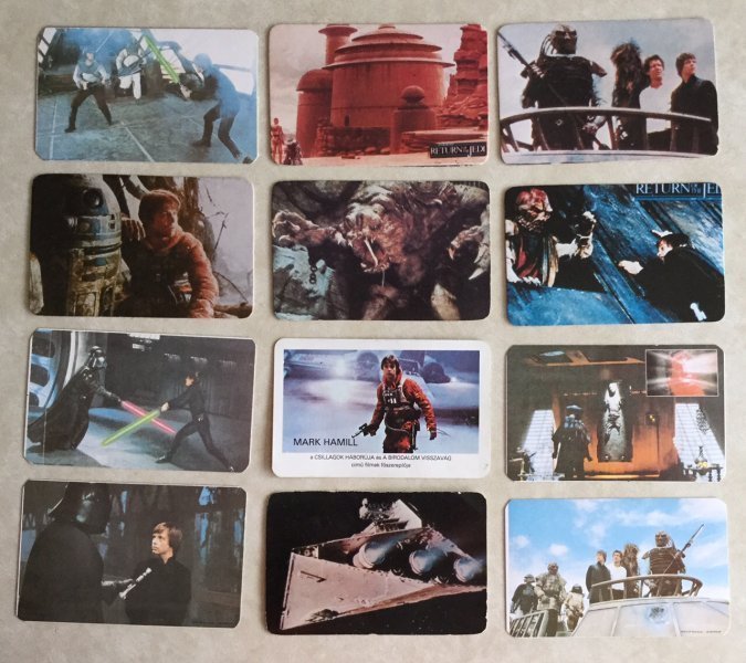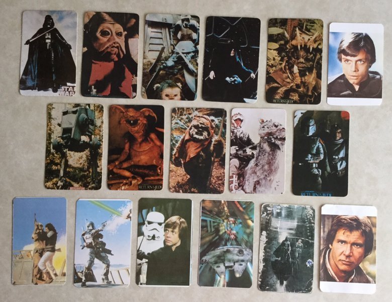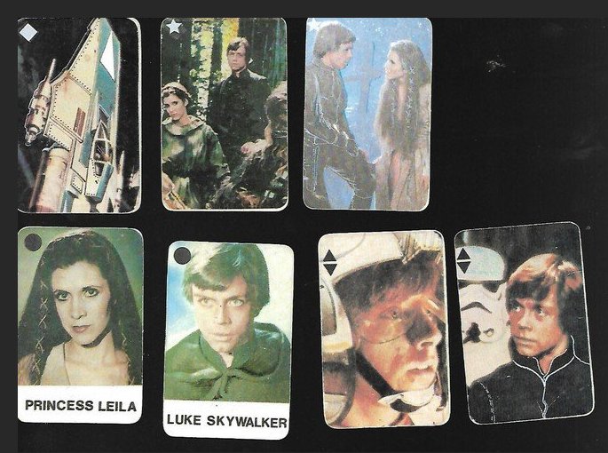 Argentinean Return of the Jedi game cards by Cromy - (1984) set of 36 USA Parker Brothers Return of the Jedi "Play for Power" card game - 1983 US Who's Who card game Harrison Ford card as 'Hans Solo' #91 - by Cadaco in 1986 Face To Face card game by Canada Games 1993 French 'Le Monde des Ewoks' / 'World of Ewoks' card game by Volumetrix - 1986 German Krieg Der Sterne (Star Wars) card game cards Here are the rules in German: And translated into English using Google: Hungarian Bootleg Memory cards game - 1980? Hungarian Bootleg Boardgame 1983 Hungarian Return Of The Jedi Bootleg 'Black Peter' or Memory game Playing Cards Here's the rules for two games, thanks for Szabi