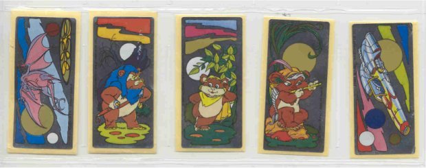 Spanish Ewoks and Droids bubble-gum foil stickers by Chicle - (1987) set of 42