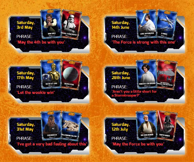 UK - set of 12 Star Wars Rebels cards, three cards per week starting 27th September