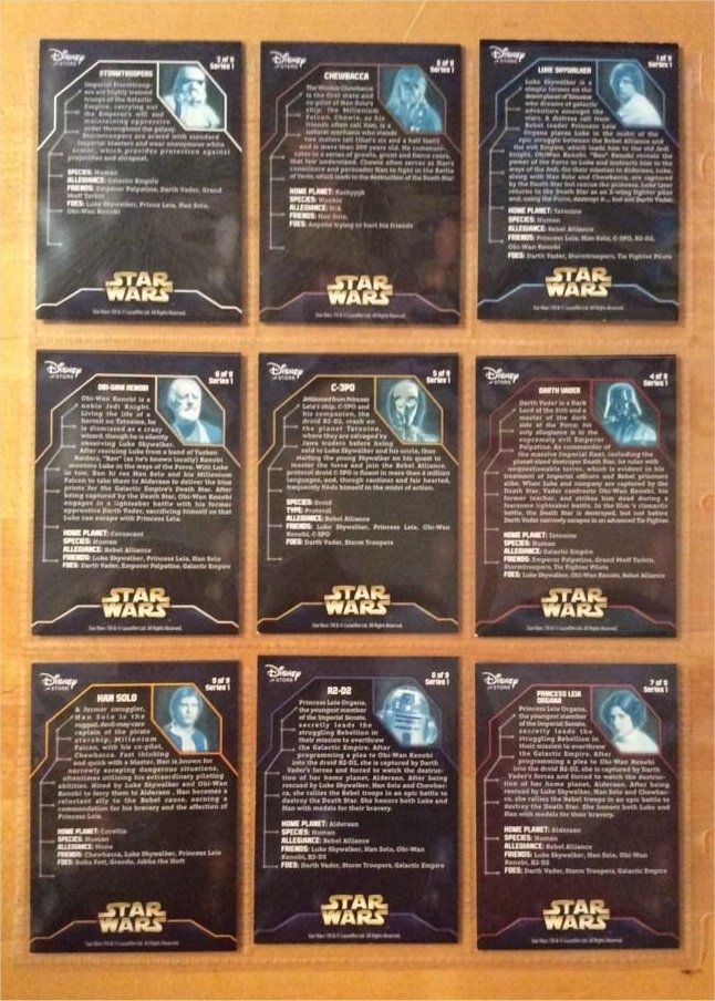UK - set of 12 Return of the Jedi Back cards, three cards per week