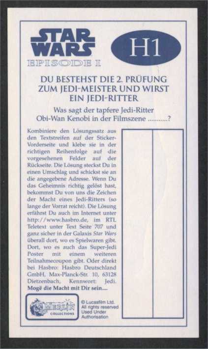 Merlin/Topps Star Wars Episode 1 Stickers from the German/Austrian/Swiss set - 1999