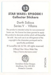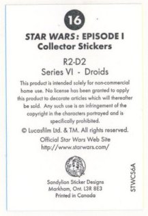 US Sandy Lion collectable SW:E1 stickers (1999) (Set of 18)