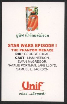Unif Star Wars Episode 1 food cards from Thailand - 1999