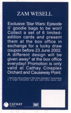 Star Wars Episode 2 Singapore Cathay Pacific cards - (2002) set of 6