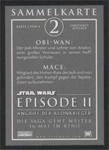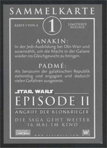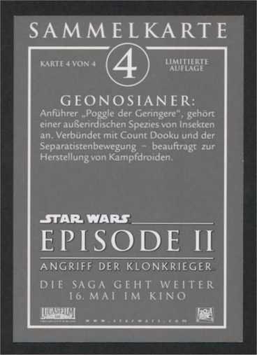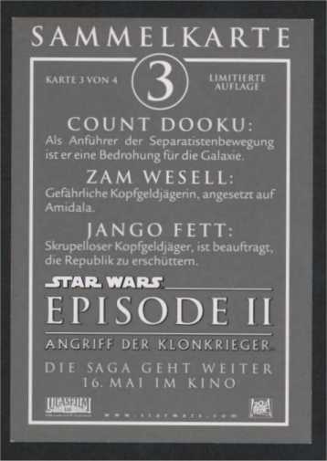German Star Wars Episode 2 opening-day cinema foil cards - (2002) set of 4