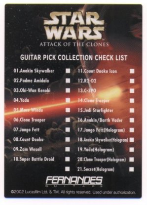 Japanese Fernandes Star Wars Episode 2 guitar pick cards - (2002) set of 4