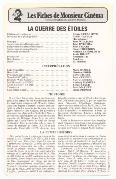 Star Wars films Star Wars actors Star Wars directors Special Effects cards from various films Indiana Jones Star Trek James Bond, 007 Here's some non-SW images from the series that I have and some non-SW images from the series that I don't have From another set called Les Stars De Toujours, another French card set from the 1990s by Atlas Editions A pin badge to accompany the card series and a box to store them