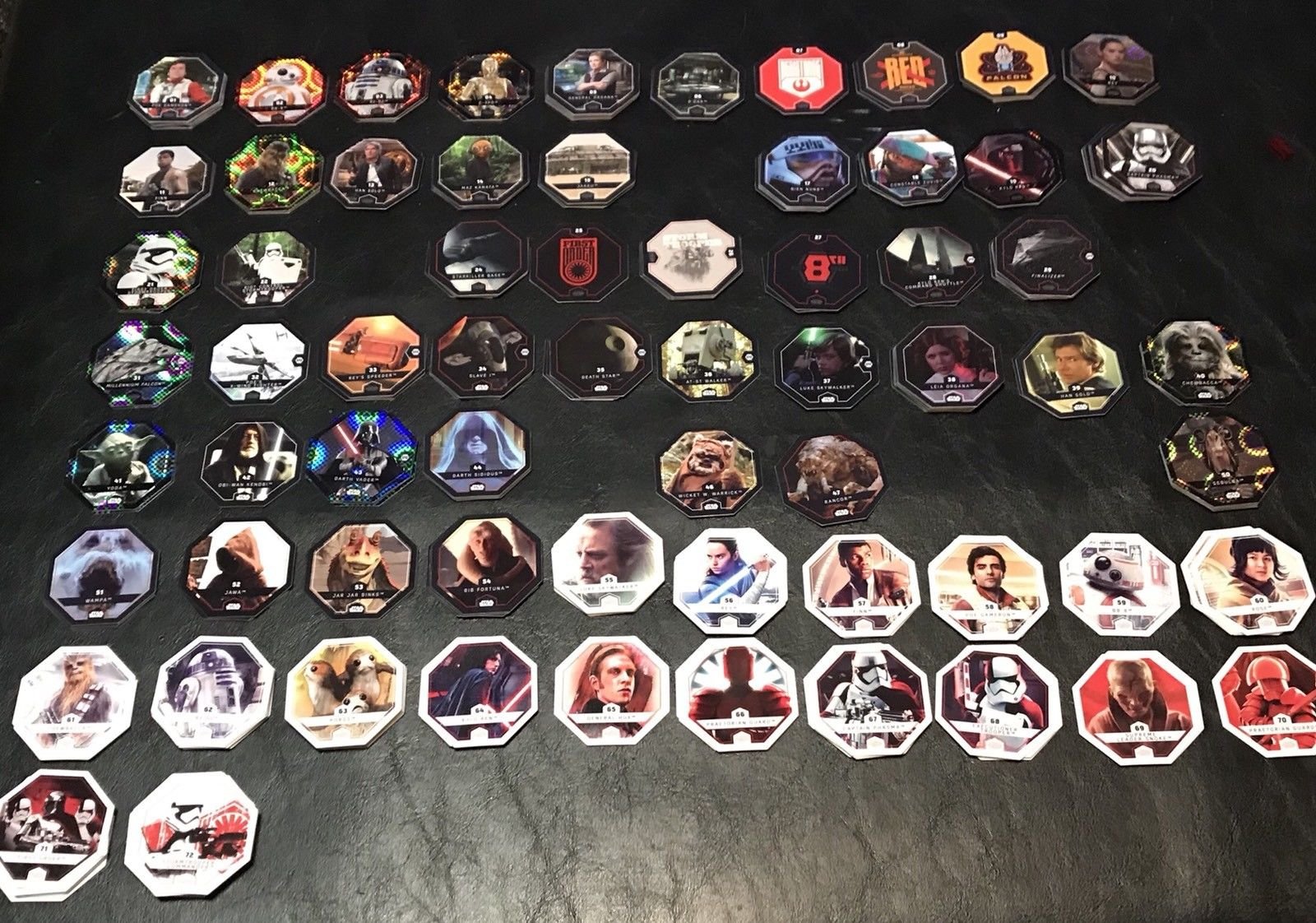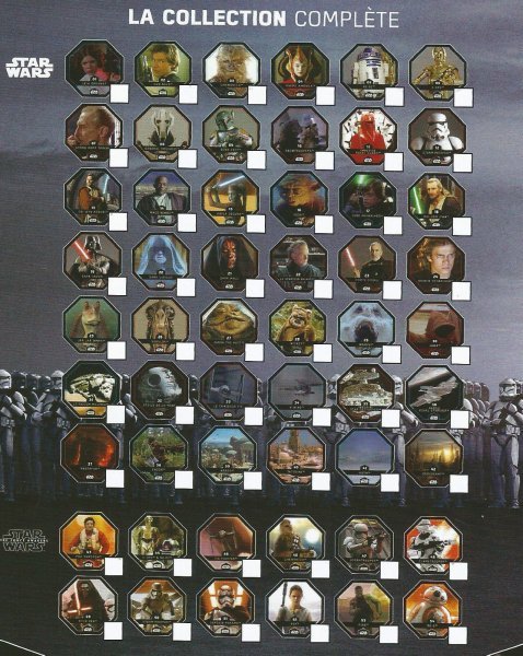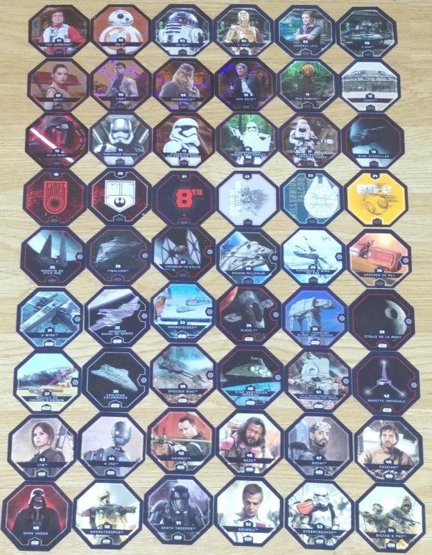 Australian & New Zealand Slingers by SASSI, 65 Metal disks and a storage folder - 2010 European Kaufland (TROS & Saga) 40 cards, an album and parallel hologram cards 2019 European Flipz (The Rise Of Skwalker & Saga) 139 Regular discs, 6 shiny LEs and oversized dice - 2019 European Topps 200 Stickers & and album - 2016 French E.Leclerc Cosmic Shells (Rogue One & Saga) 54 Eight sided cards and an album - 2016 French E.Leclerc Cosmic Shells (TFA & Saga) 54 Eight sided cards and an album - 2015 French E.Leclerc (TROS & Saga) 88 Stickers and an album - 2019 UK Topps Star Wars Universe, 320 Stickers and a starter pack with an album - 2017 USA Winn Dixie BI-LO Cosmic Shells (TLJ & Saga) 72 Eight sided cards and an album - 2017