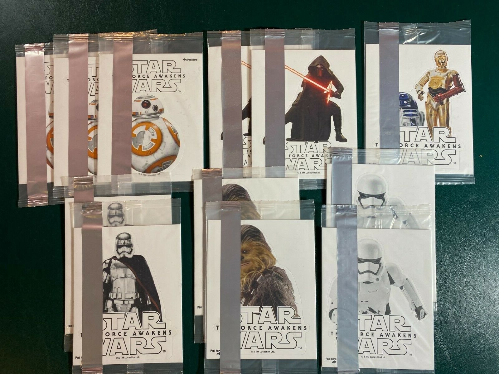 Peruvian Gloria cards, (set of 6?) 2015 USA Entertainment Weekly Episode 7 The Force Awakens virtual retro-style 'cards' (set of 8) 2015 USA General Mills The Force Awakens Cereal Tattoos (set of 6) 2015
