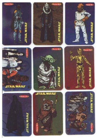 Star Wars cards, stickers, POGs, Tazos, movieclips, E1, E2, E3, CW, etc, click on the image to see the full set