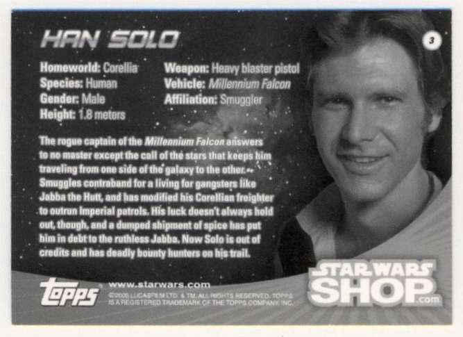 | 3 | 1000 | Han Solo - Quite a Mercenary | From Han Solo T-shirt | |