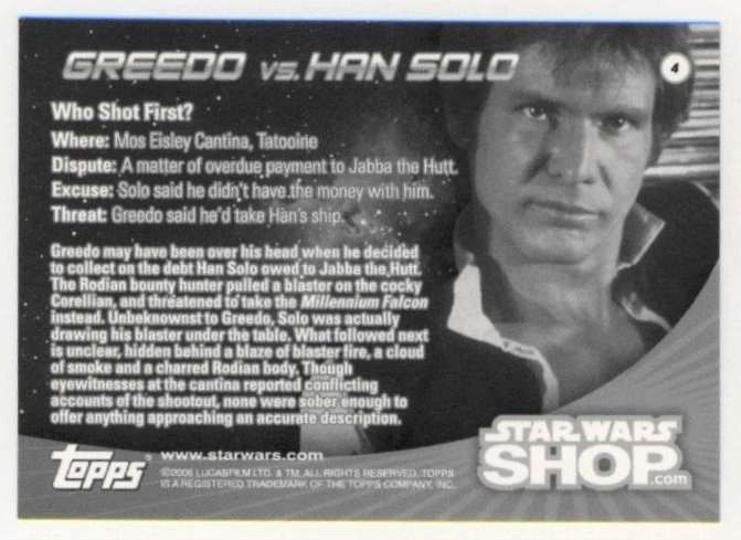| 4 | 3000 | Greedo vs. Han Solo - Who Shot First? | Original Trilogy on DVD | |