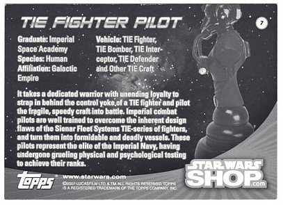 | 7 | ? | TIE Fighter Pilot - Imperial Space Superiority | ? | Want |