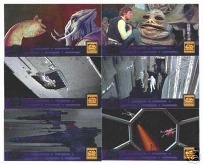 Topps Promos Galoob Promos Dutch Pepsi Promos - these are the same as the regular cards but are un-numbered Laser-cut promo card and rare un-cut laser promo SWT retail set laser-cut chase cards SWT:SE hobby set laser-cut chase cards SWT:SE Hobby set uncut non-laser cut sheet
