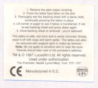 UK Lyon's Maid SWT:SE Tattoos - (1997) set of 6 sheets of 3 and 18 singles
