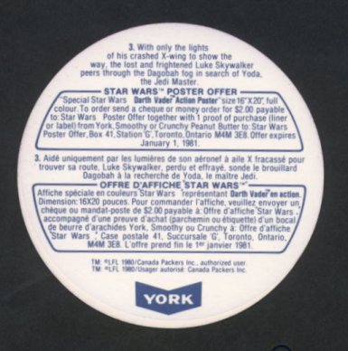 Empire Strikes Back peanut butter cards by York of Canada (1980) (set of 6)